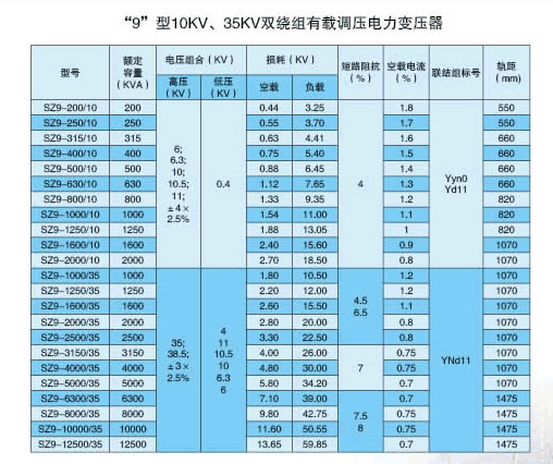 "9"型10KV、35KV雙繞組有載調壓電力變壓器