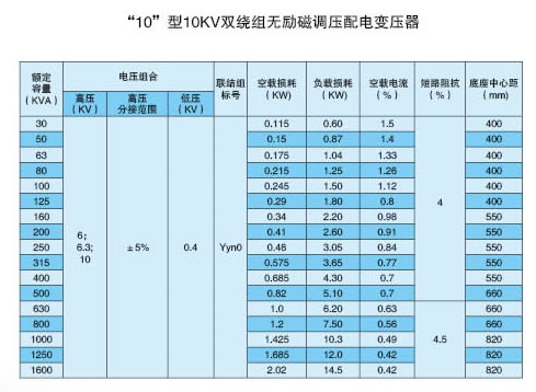 "10"型10KV雙繞組無勵磁調壓配電變壓器
