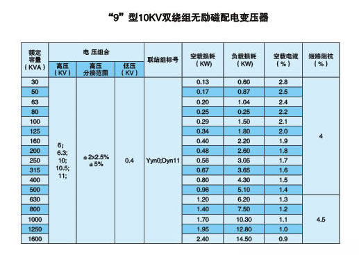 "9"型10KV雙繞組無(wú)勵(lì)磁配電變壓器
