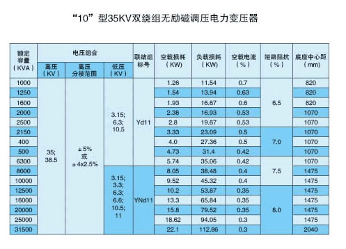 "10"型35KV雙繞組無勵磁調壓電力變壓器